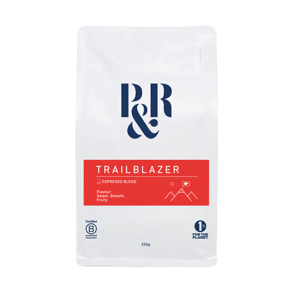 Trailblazer brings together a small selection of exceptional and seasonal coffees to produce notes that are sweet, fruity and smooth. We typically source beans from Ethiopia, Colombia and Tanzania, with fully traceable production.
